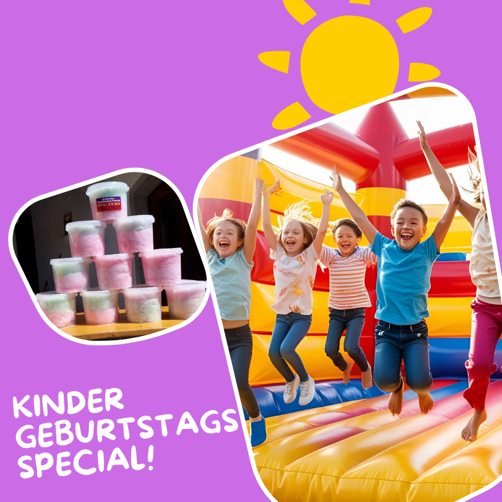 Rund um unsere beliebten Hüpfburgen bieten wir dir auch Zusatzleistungen, mit denen du aus einer einfachen Veranstaltung ein echtes Highlight machst – ob Zuckerwatte, professionelles Popcorn oder spezielle Pakete für Kindergeburtstage.
